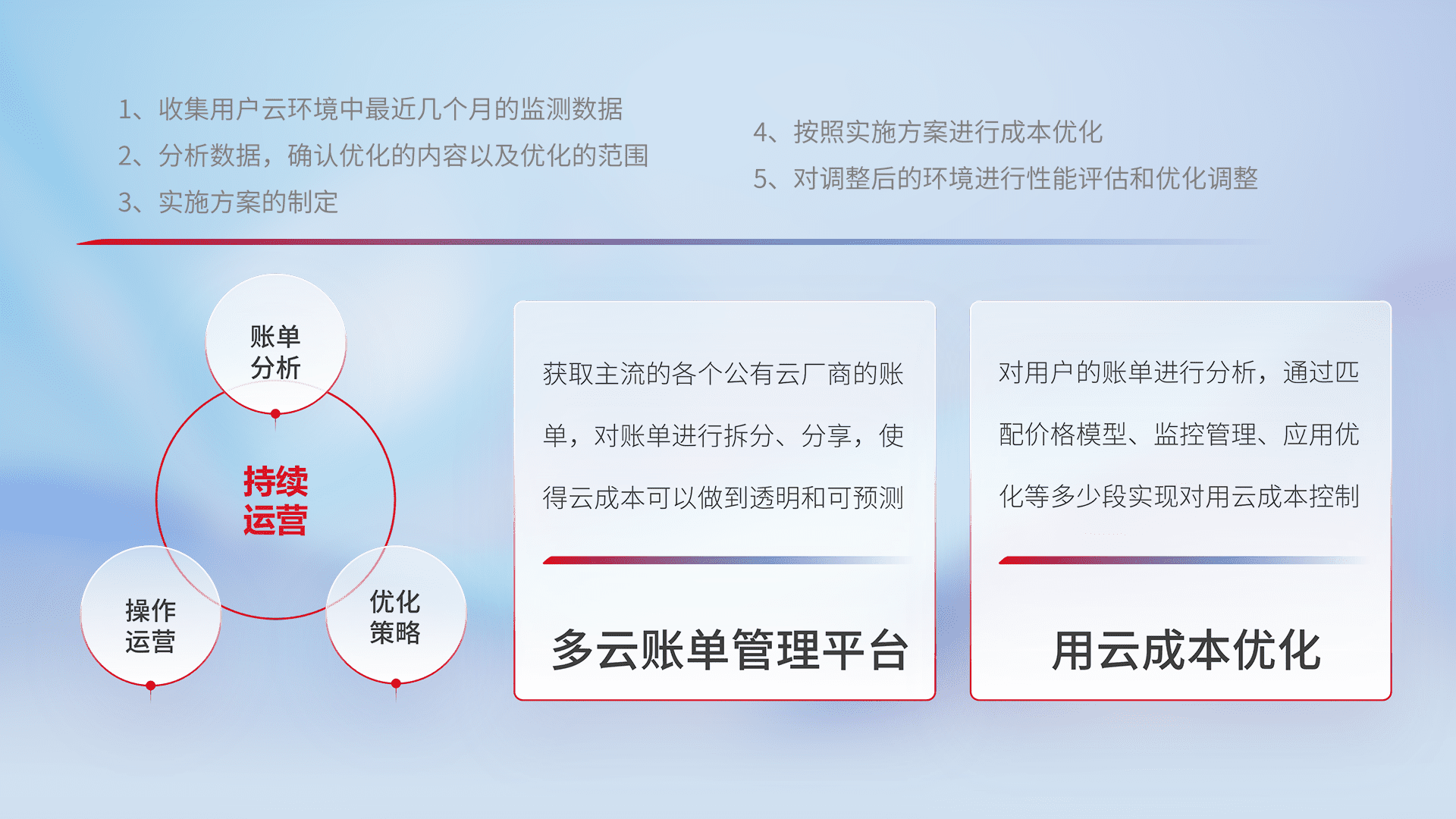 运用智能化工具分析云资源,,,,提供日常费用可视化工具,,,,自动账单拆分,,,,成本优化云上费用,,,,降本增效。。